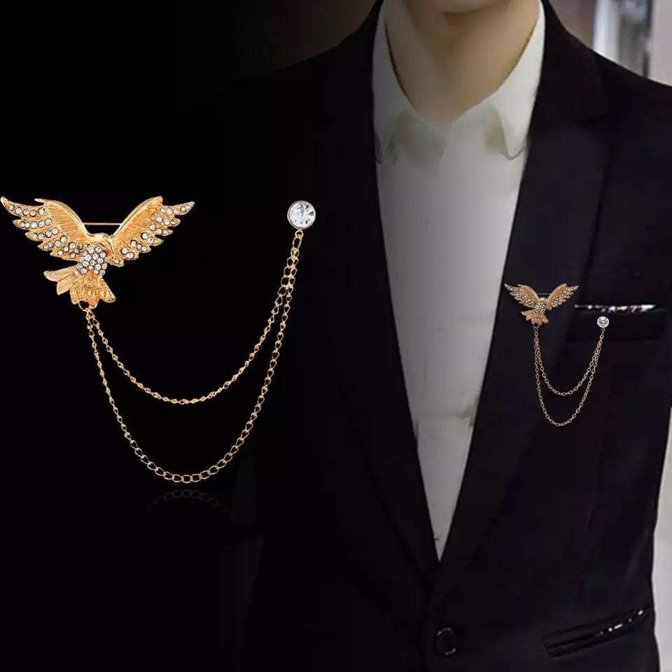 Rhinestone Flying Eagle Tassel Chain Brooch